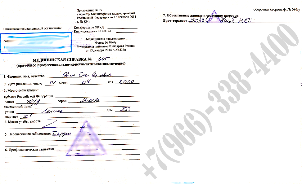 Купить справку 086 у без прохождения врачей в Москве с доставкой