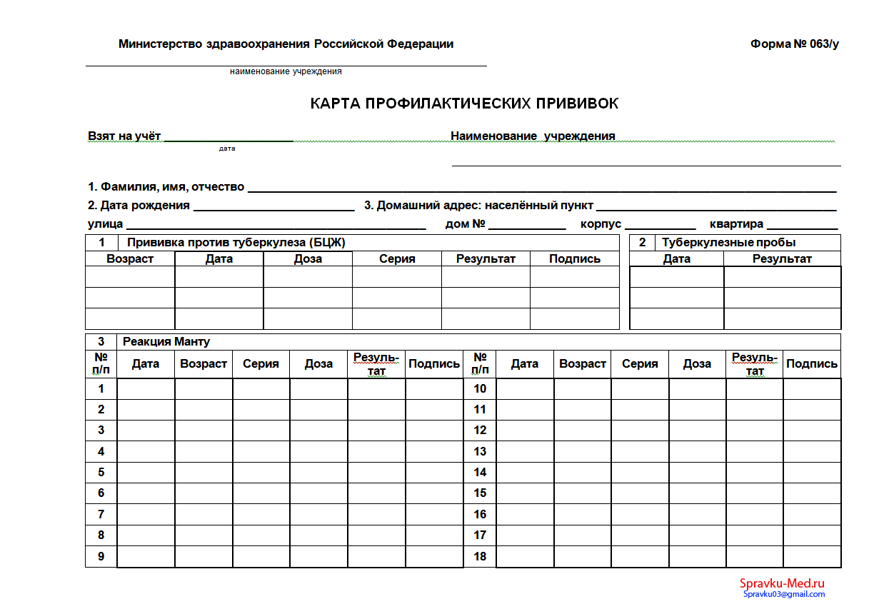Предназначение карты прививок 063 у