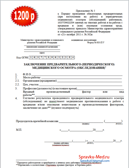 Медицинская справка по приказу 302 Н для поступающий в медицинские образовательные учреждения