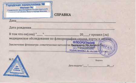 Чтобы получить справку о флюорографии можно обращаться в поликлинику по месту жительства. Там в регистратуре проводят запись на процедуру. В зависимости от загруженности рентгенкабинета ожидание длится от 1 дня до нескольких недель. В указанное время нужно будет прийти на исследование.После этого вам придется дождаться результатов и снова прийти в поликлинику. В большинстве случаев на это требуется еще несколько дней. Таким образом, обычная справка о флюорографии отнимет у вас в среднем несколько дней, что потянет за собой смену планов, необходимость отпрашиваться с работы и томительное ожидание в больничном коридоре.
